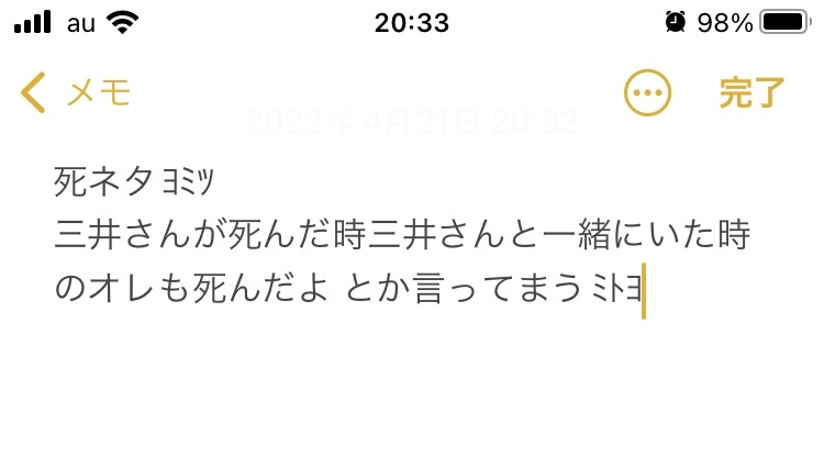 最近まじ妄想する暇もないんですけどって思いながらメモ帳開いたらこんなの出てきてほんと自分さあ…………これイイネって思いました 多分この前ドラマ見てた時に言ってた台詞パクったやつだと思う #洋三