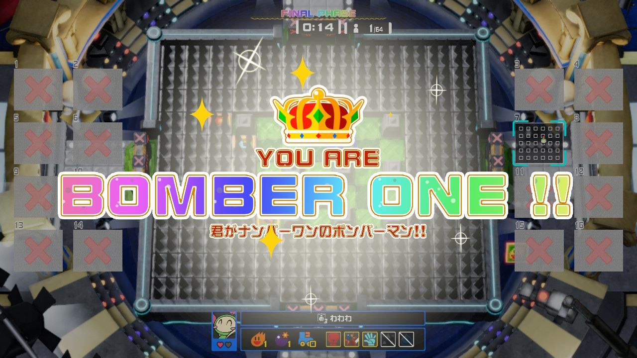 ボンバーマンオンライン、慣れてくると逃げ回るだけじゃなくて自分も好戦的になってくるし徹底的に狙われるとお?やんのか?受けて立つぞってなるのめっちゃ楽しくてゾクゾクするぞ その後瞬殺されるんですが #ボンバーマン